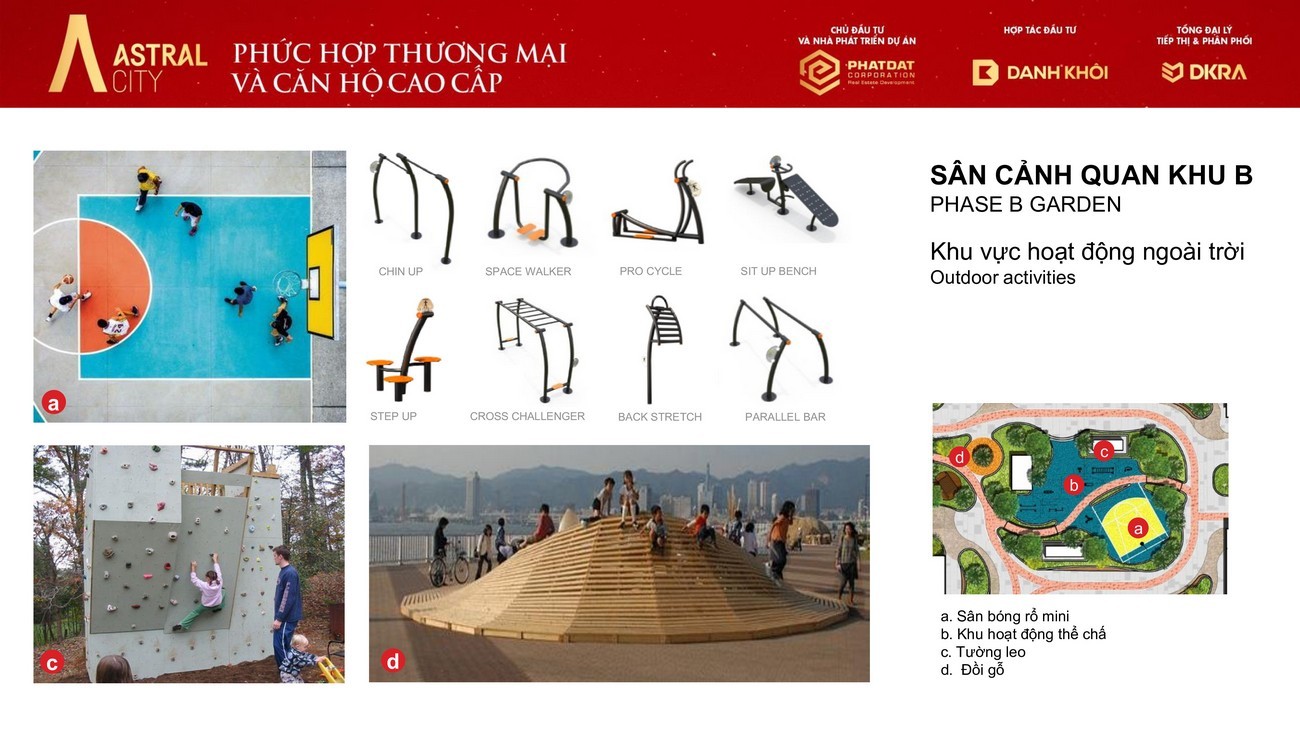 | Tiện ích Astral City | • Trường mầm non và Trường Tiểu học, Công viên , ,Trung tâm thể dục thể thao (gym, spa, yoga…), Quảng trường, Vườn nướng BBQ, khu ẩm thực, thư viện, phòng sinh hoạt chung, đường chạy bộ, bể bơi… |